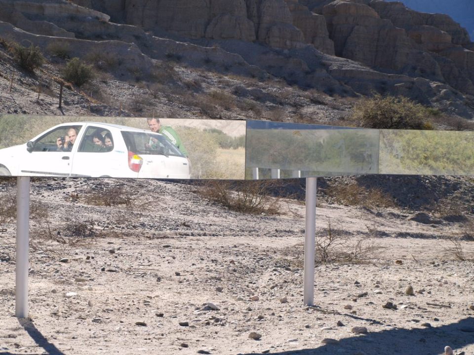 ...Míňame prázdne cestné značky, ktoré dokonale zrkadlia okolie...